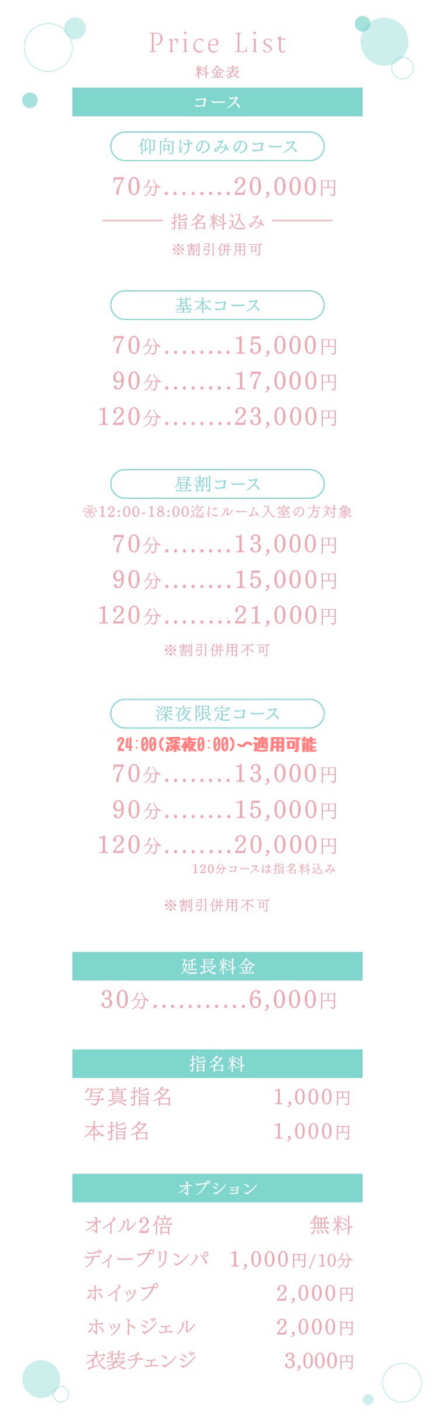 ※120分コースは指名料込み
